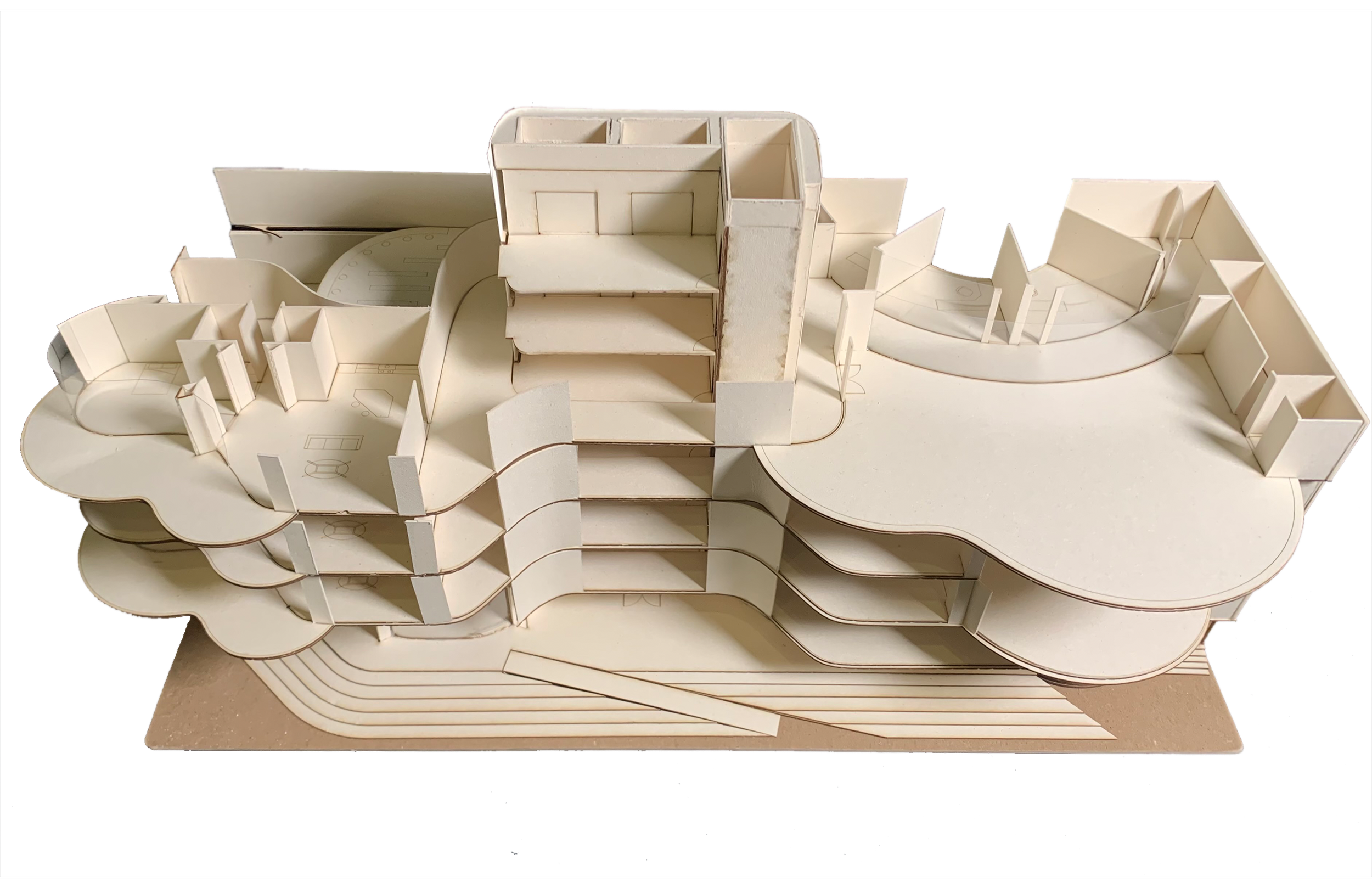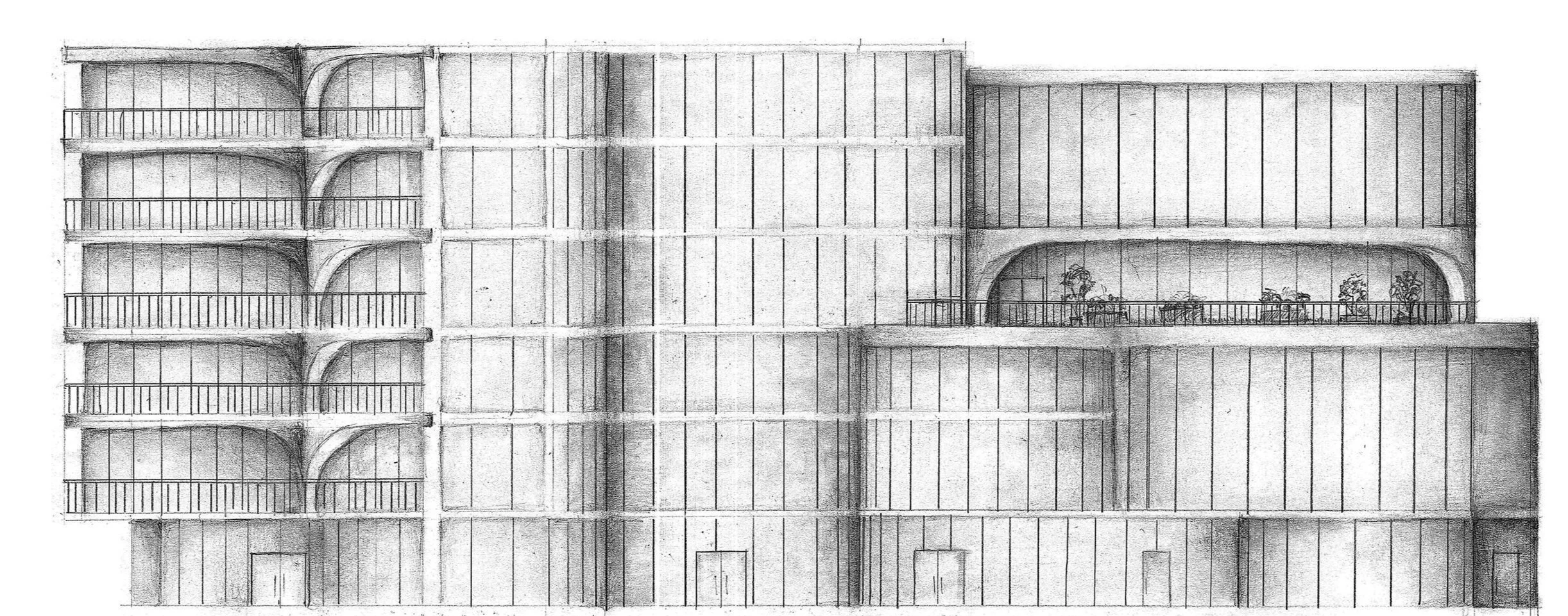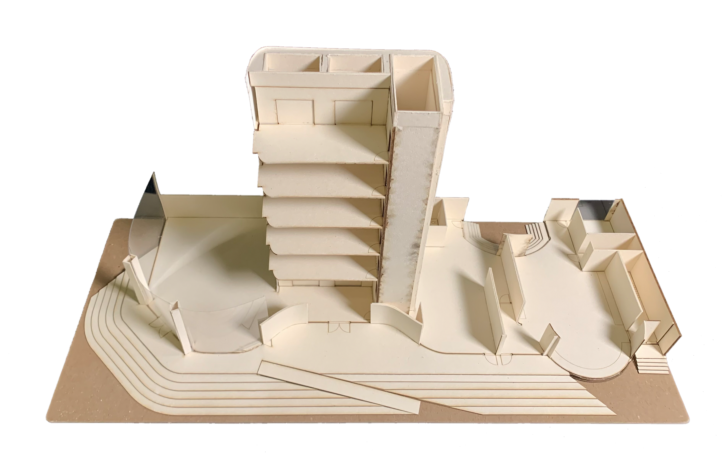 The M. Maria Project was developed to accommodate numerous creative programs which include art, culinary arts, visual performance, literature, and architecture. The programs aim to provide a creative environment for the community where they can pursue and explore different creative endeavors. Concepts explored during the precedent study were used to inform the language of the structure, such as the Marina City in Chicago. Each floor has a designated program with spaces that foster learning and growth as well as apartments for the five in house residents: an artist, a chef, a visual performer, a writer and an architect. This project was partially hand drafted, and I was able to learn the process of bringing a hand drafted project in the digital realm.
